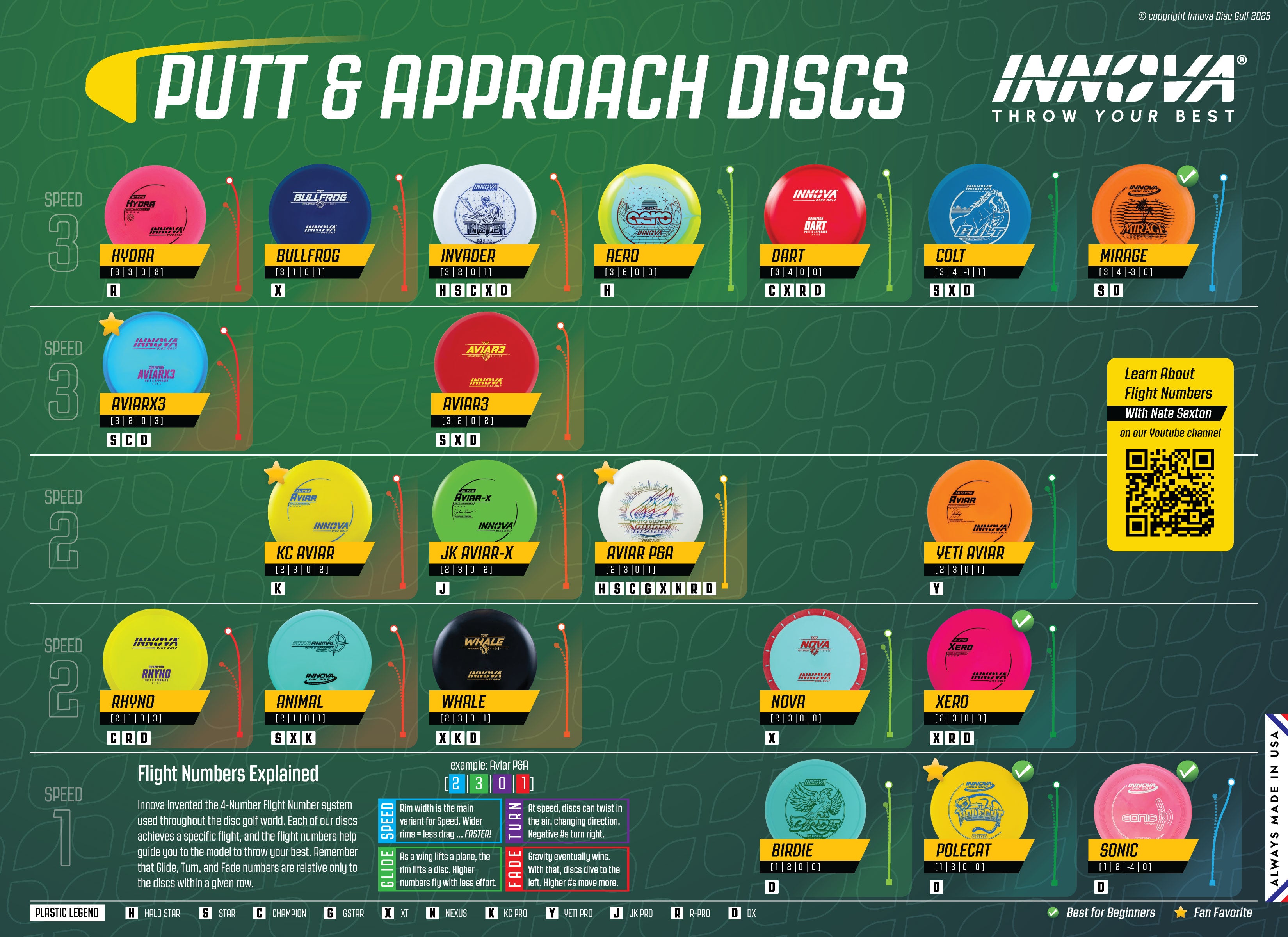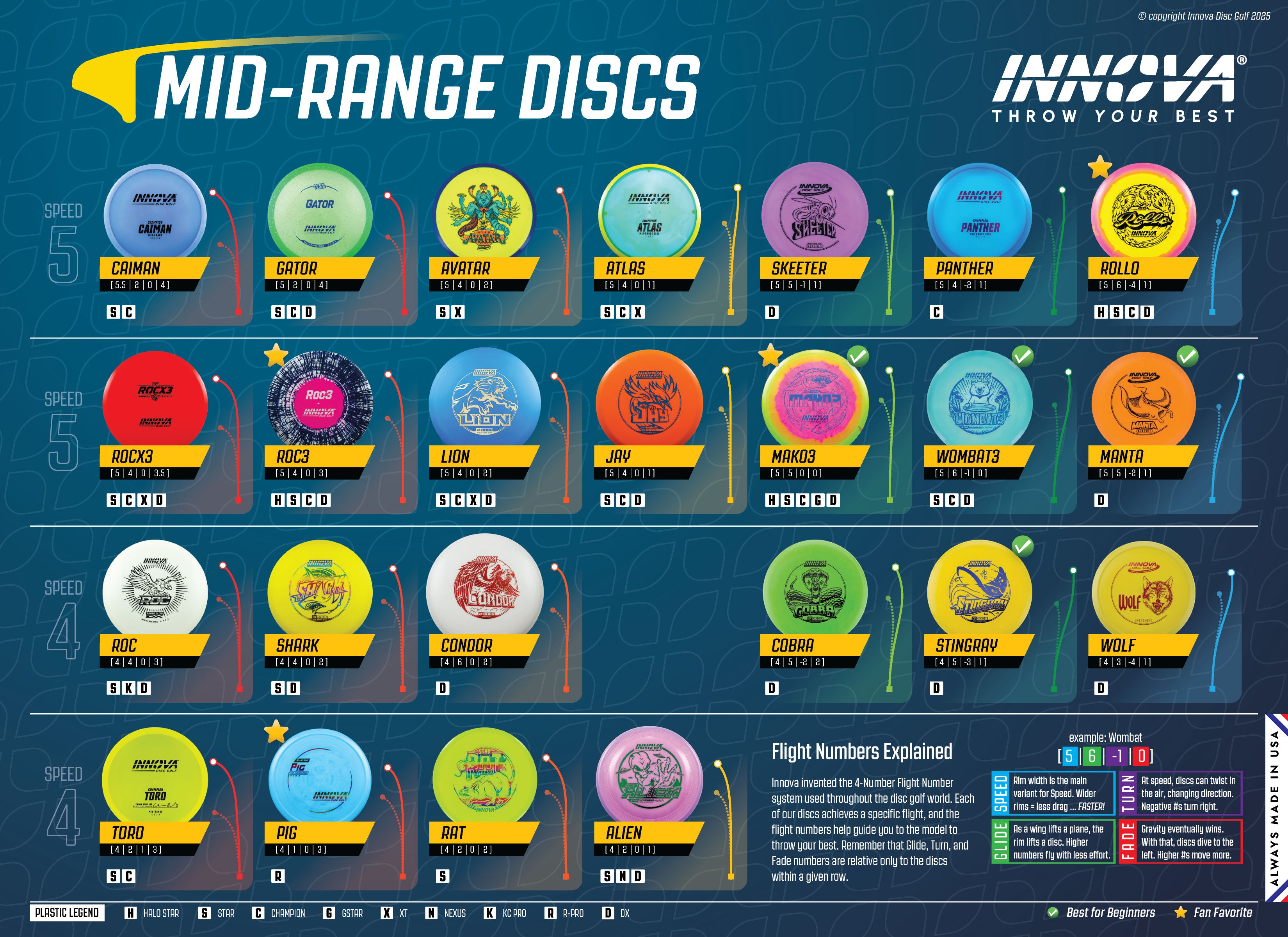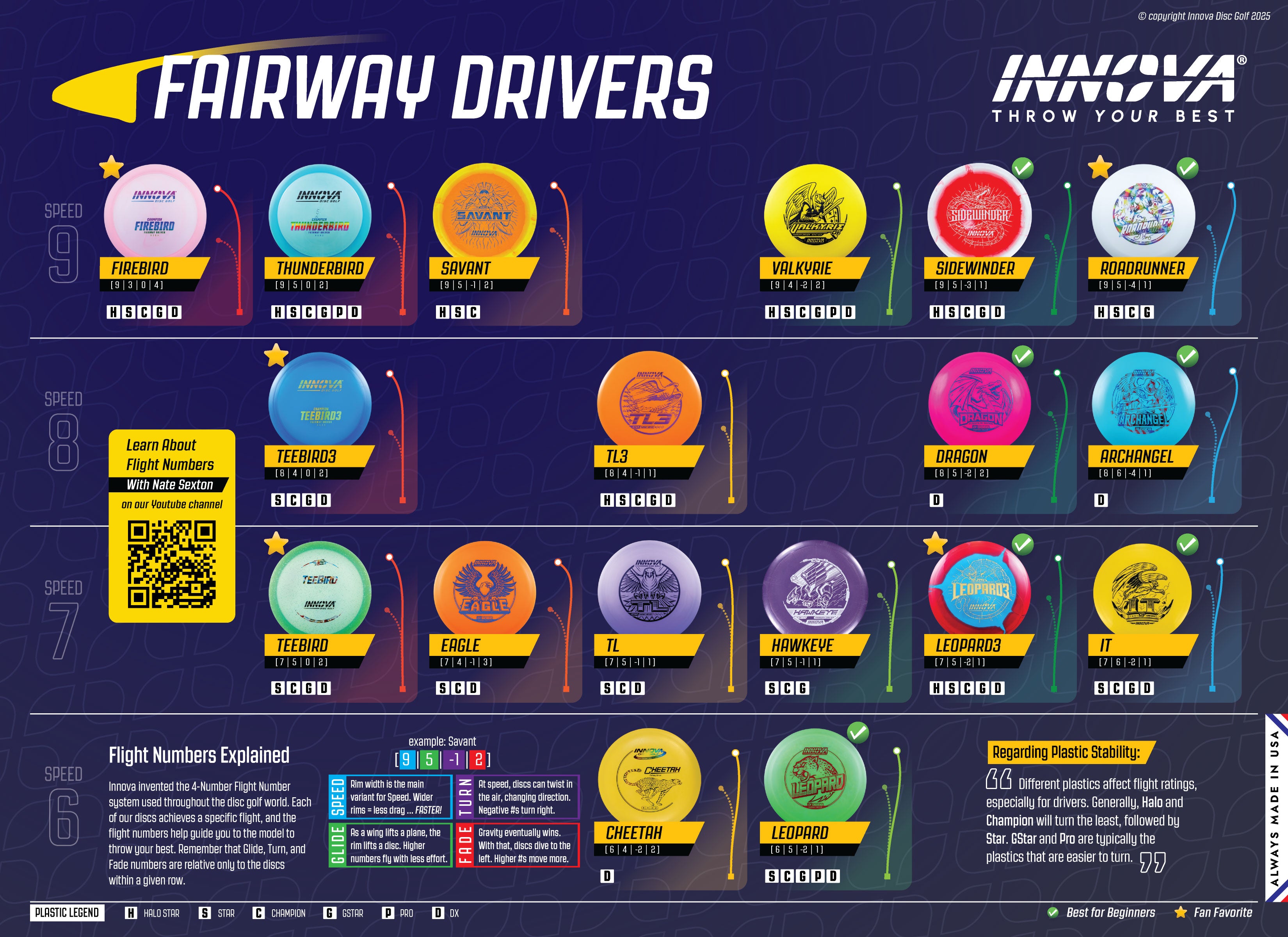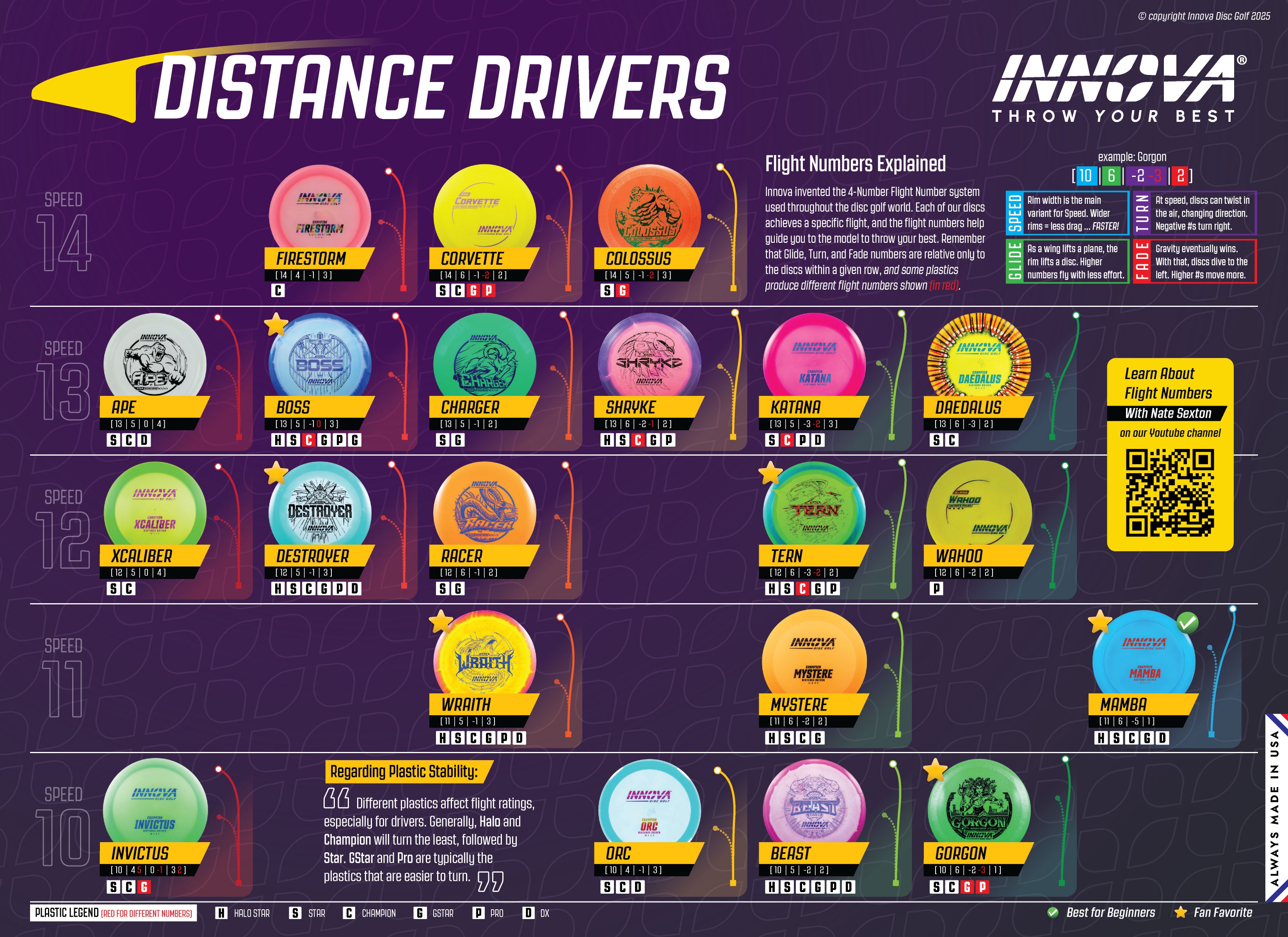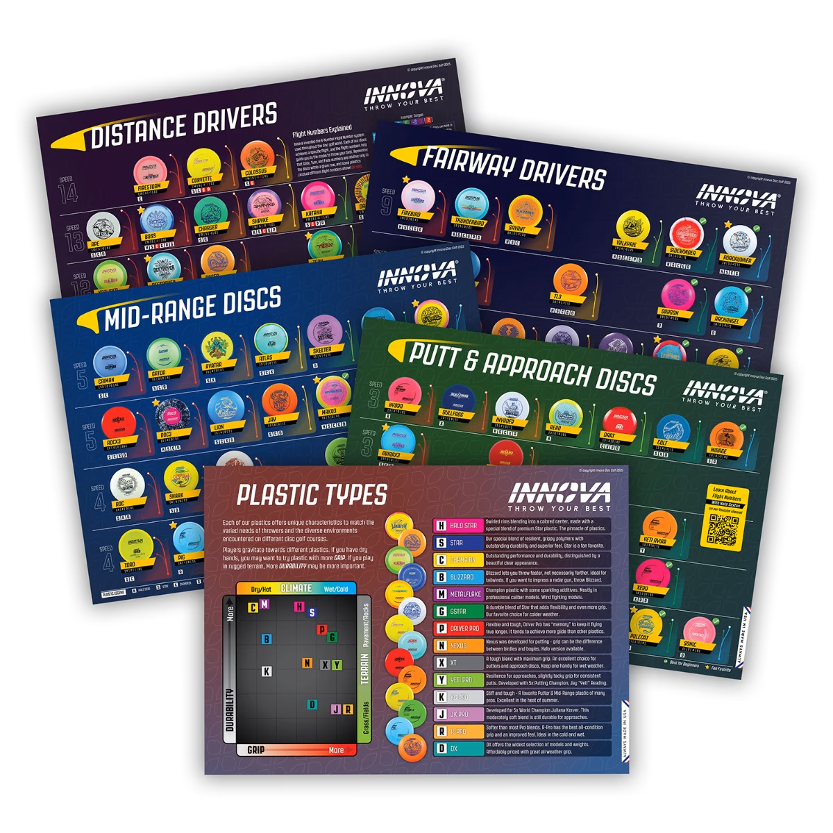 Find your perfect flyers — There's a separate poster for each category: Distance Drivers, Fairway Drivers, Mid-Range, and Putt & Approach, all organized by speed and stability.
